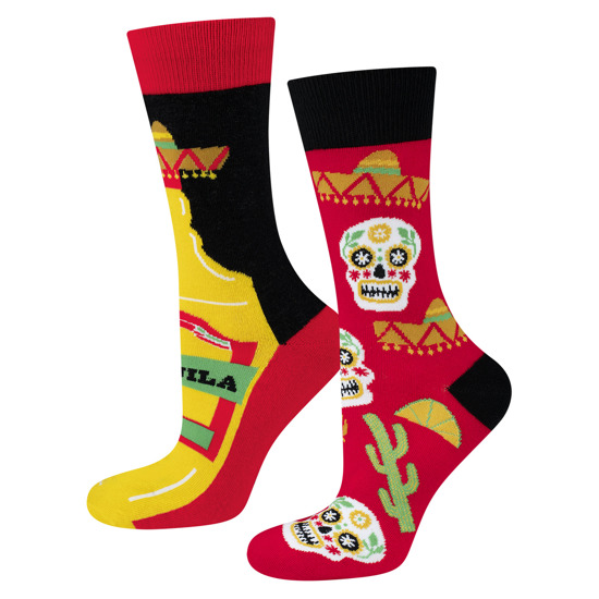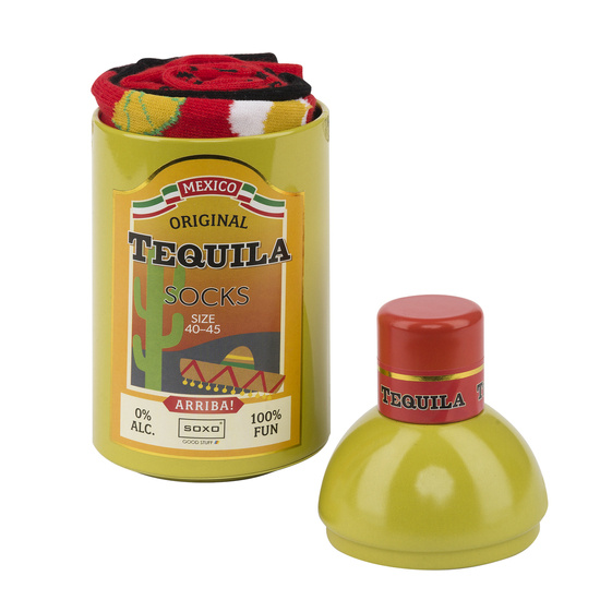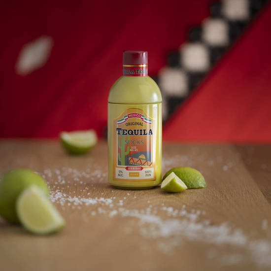 Este calcetín es un regalo original, que combina dos elementos distintos en uno, un par de calcetines con un diseño divertido en rojo y amarillo al estilo mexicano y una botella clásica de coctel en aluminio. Los calcetines que se encuentran en el interior de la botella. Este calcetín es suave, cómodo y está hecho de materiales de alta calidad es un regalo ideal para alguien a quien le guste la moda y la fiesta, es una forma única y divertida de envolver un regalo. Con su combinación inesperada y su atractivo empaque, este regalo es una opción sorprendente y alegre que puede ser apreciado por cualquier persona.