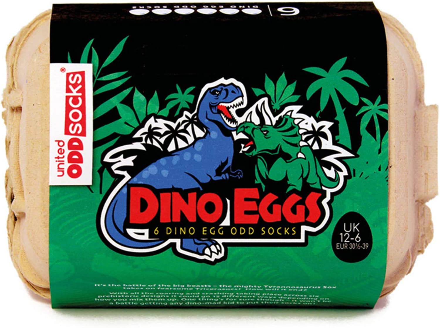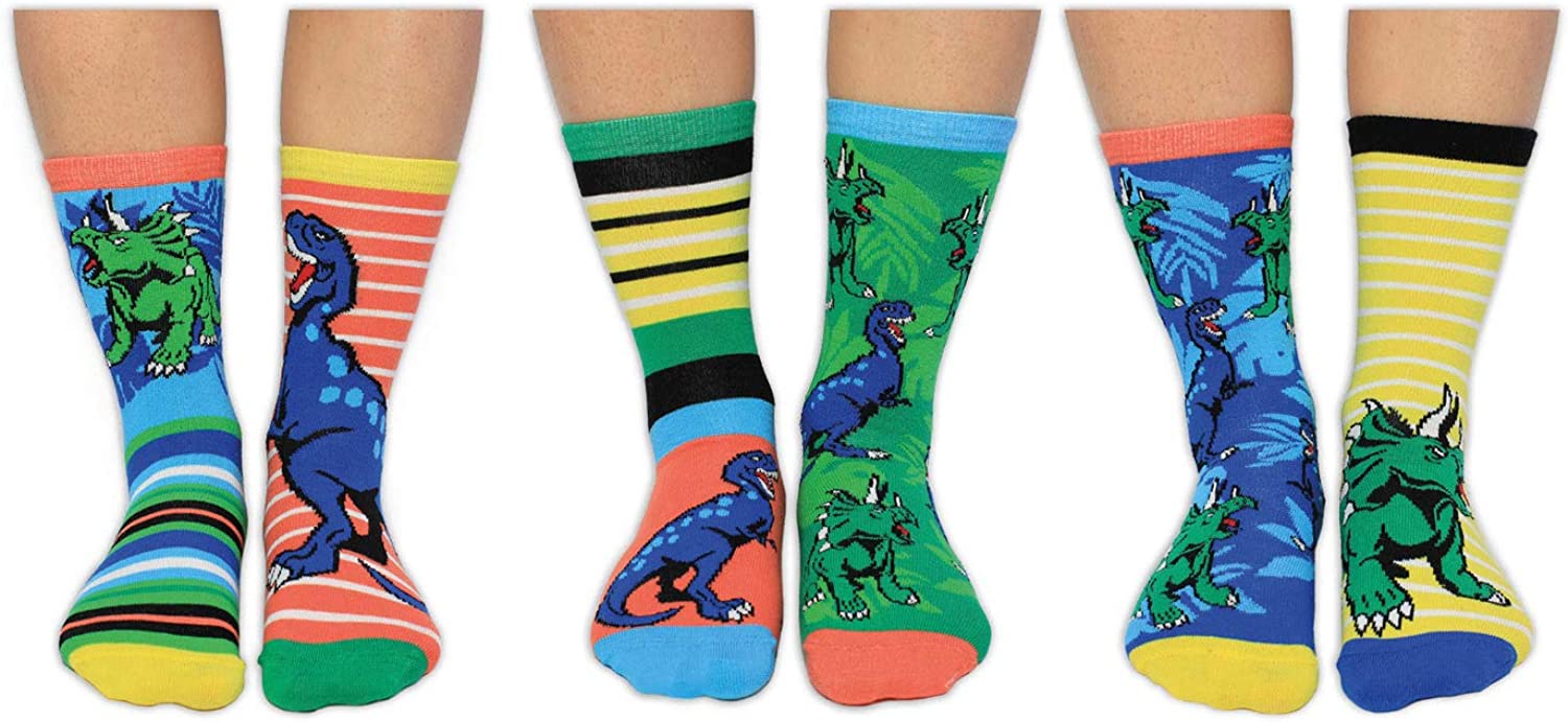 Es la batalla de las grandes bestias: ¡el poderoso Tyrannosaurus Sox se enfrenta a los temibles Tricerasocs! ¿Cómo terminará? Caja de seis calcetines desparejados (no seis pares) para aumentar tus posibilidades de combinación de calcetines locos