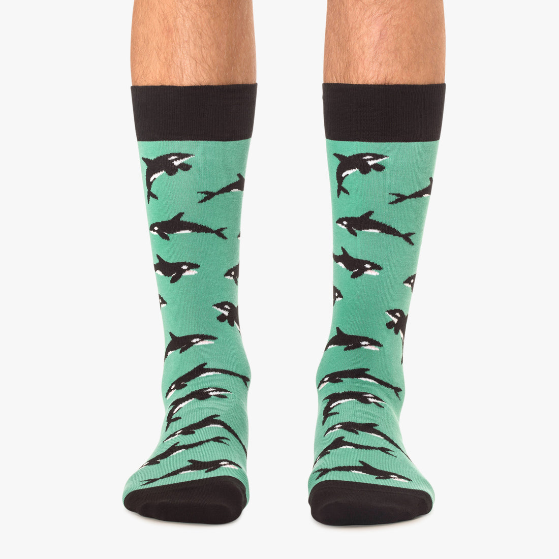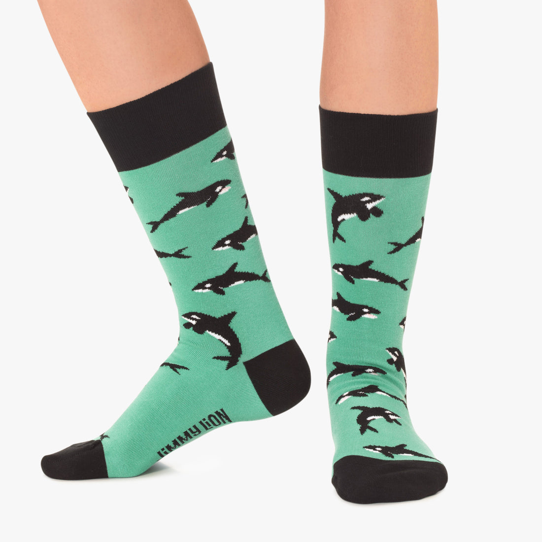 Estos calcetines con dibujos de orcas en color turquesa son la opción perfecta para los amantes de los animales marinos. Con un diseño lleno de color y detalle, estos calcetines muestran a las impresionantes orcas en su hábitat natural, nadando en el océano. Hechos con una mezcla suave de algodón y poliéster, estos calcetines ofrecen comodidad y durabilidad inigualable . Además, tienen una banda elástica en el tobillo para un ajuste cómodo. Conseguir estos calcetines con dibujos de orcas es una excelente forma de mostrar tu amor por la naturaleza y los animales marinos, y añadir un toque de color a tu guardarropa. ¡No esperes más y consigue el tuyo hoy mismo!