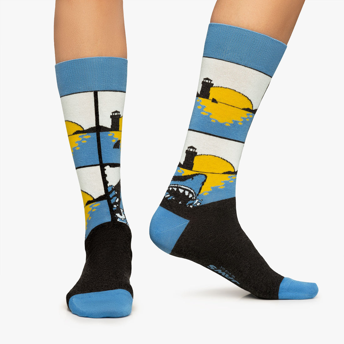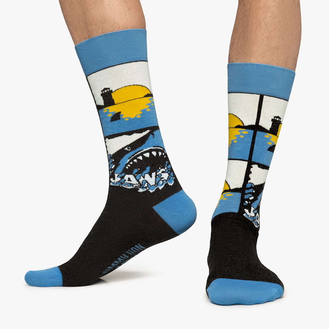 Estos calcetines con un tiburón asesinó está listo para atacar a su próxima víctima, llamará la atención por su originalidad y será una excelente opción para aquellos que buscan accesorios diferentes te harán revivir la taquillera película de Steven Spielberg. Disfruta de su original estampado del tiburón hambriento. Hechos con una mezcla suave de algodón y poliéster, estos calcetines ofrecen comodidad y durabilidad inigualable . Además, tienen una banda elástica en el tobillo para un ajuste cómodo. ¡No esperes más y consigue el tuyo hoy mismo!