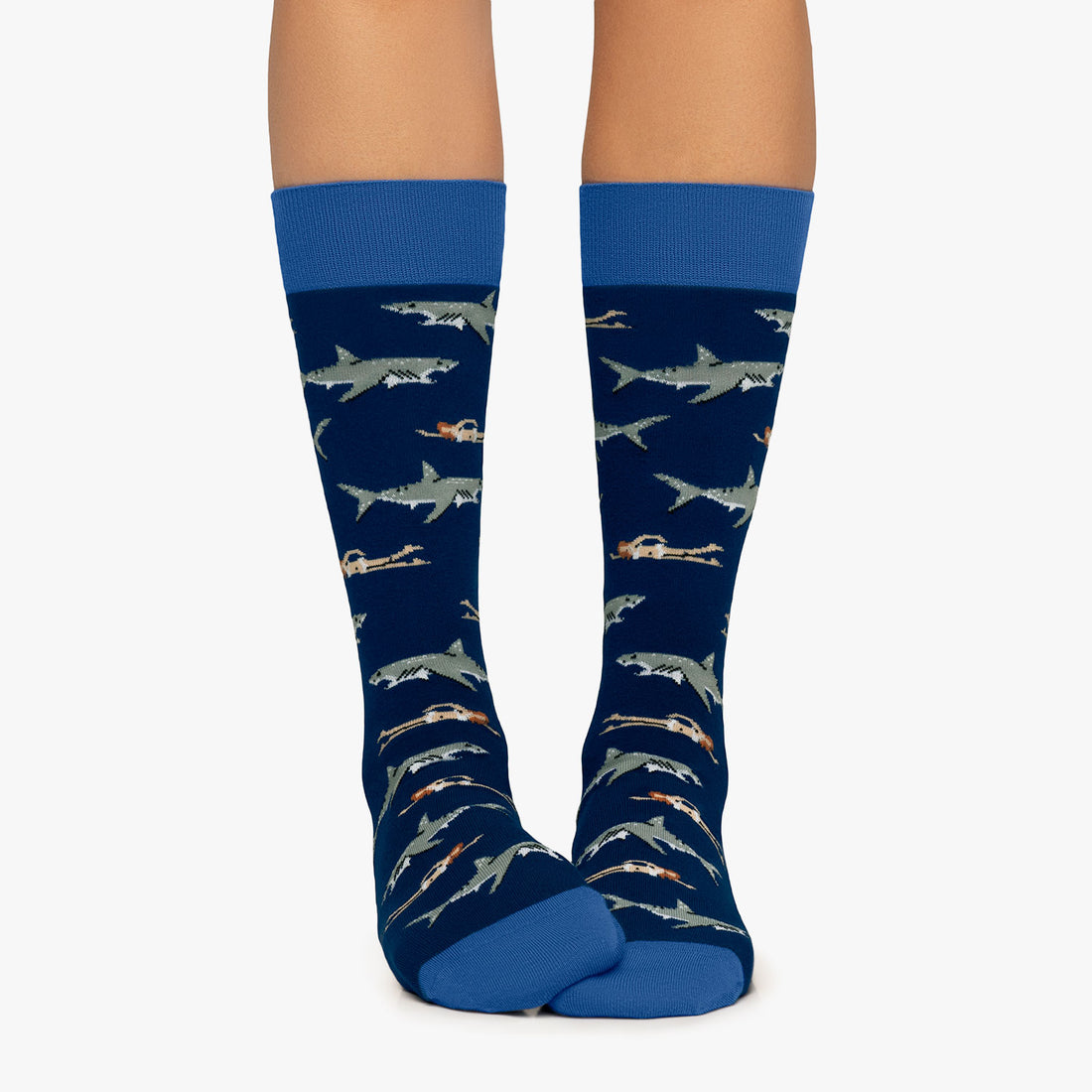 Estos calcetines con dibujos de tiburones  llamará la atención por su originalidad y será una excelente opción para aquellos que buscan accesorios diferentes y divertidos. Además, es una excelente manera de mostrar su amor por los tiburones y la vida marina. Hechos con una mezcla suave de algodón y poliéster, estos calcetines ofrecen comodidad y durabilidad inigualable . Además, tienen una banda elástica en el tobillo para un ajuste cómodo. ¡No esperes más y consigue el tuyo hoy mismo!