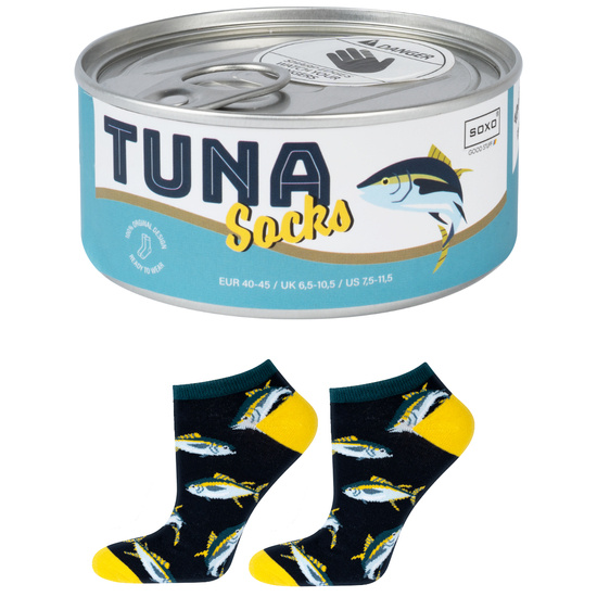 Un calcetín envuelto en una lata de atún es un regalo inusual y divertido. Este regalo sería ideal para un amante de la pesca o para alguien que simplemente aprecie los regalos originales y divertidos. La combinación de un calcetín cómodo y una lata de atún inusual hace que este regalo sea una elección única y alegre para cualquier ocasión especial.